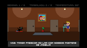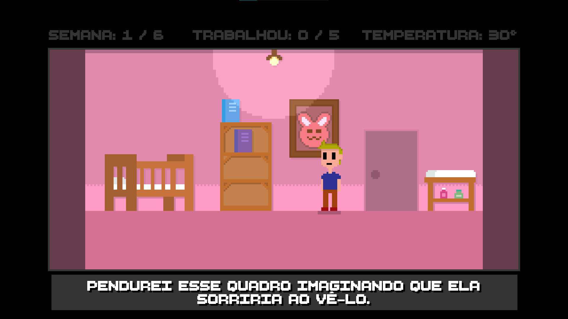 Exploração: Interaja com o cachorro, visite o quarto do bebê, explore sua casa e observe os efeitos do calor extremo na cidade.